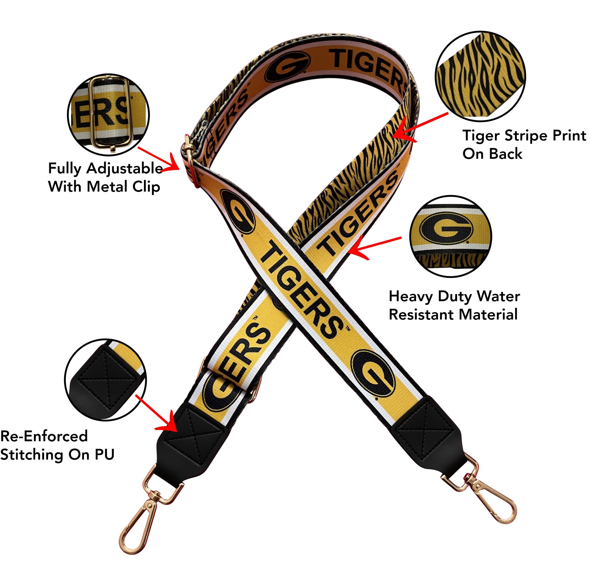 The custom Grambling crossbody strap completes the look with unmatched Tiger pride. Designed with reinforced endings for strength and longevity, this adjustable and reversible strap features: